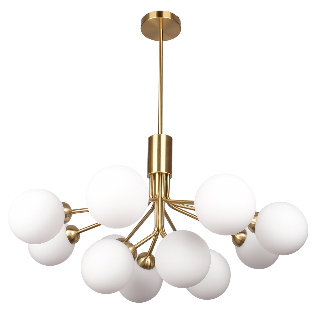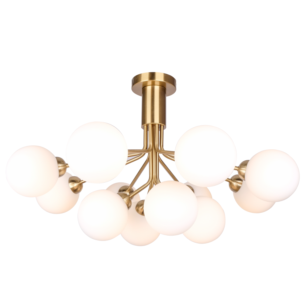 Białe, okrągłe szklane klosze Cape Town nadają serii lekkości i nowoczesności. Model P12049BR to doskonały wybór na główną lampę w salonie, sypialni lub dużym holu.Cała seria lamp Cape Town jest wykończona w kolorze mosiądzu/złota.Rekomendujemy używania żarówek ledowych G9 COSMOLight, które gwarantują równomiernie oświetlenie całego klosza