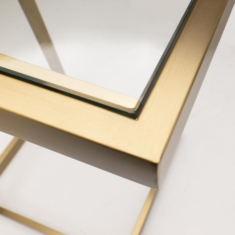 Hudson - wysublimowany i niezwykle funkcjonalnyStolik boczny Hudson został zaprojektowany tak aby wpasował się w salon w stylu nowojorskim, ale był równie funkcjonalny. Stolik sprawdzi się zarówno w dowolnym miejscu w salonie czy sypialni, ale może również pełnić funkcję pomocnika. Wsuwając go pod kanapę czy fotel sprawi, że kawa i dobra książka zawsze będzie pod ręką.Nowojorski stolik Hudson został wykonany ze szczotkowanej stali nierdzewnej i przezroczystego szkła hartowanego. W zależności od kolorystyki dominującej we wnętrzach stolik został wykończony w kolorze niklowanej stali nierdzewnej, polerowanym złocie, szczotkowanym mosiądzu lub szczotkowanej czerni.